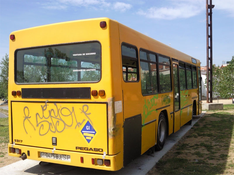 De fet els autocars es van instal·lar a la via pública, però sense comptar amb un sistema de tancament de portes i finestres, pel que l’accés dins els vehicles és molt fàcil. Això fa que els bussos estiguin ocupats per nens i joves, que actualment juguen entre els vidres trencats, i les restes del vehicle, com els triangles de senyalització, els fanals o les llums interiors.