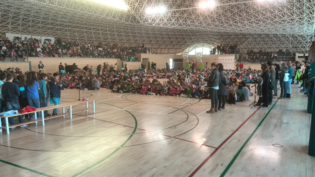 La sessió s’ha fet tancada al públic, pel que no hi han pogut assistir els pares dels alumnes. Tot i això, tant sols amb els nens i nenes i els mestres s’ha omplert la pista i les grades del Palauet.