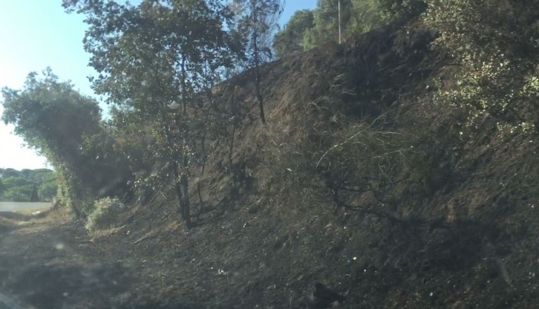Ahir a la tarda es va declarar un petit incendi en un marge de la carretera prop del restaurant Casa Oms. La Policia Local va rebre diverses trucades alertant del foc, i quan la patrulla va arribar al lloc dels fets va trobar gent intentant apagar-lo amb mantes i un extintor. La Policia també va fer servir un extintor, però en veure que les flames es tornaven més violentes, van alertar el 112.