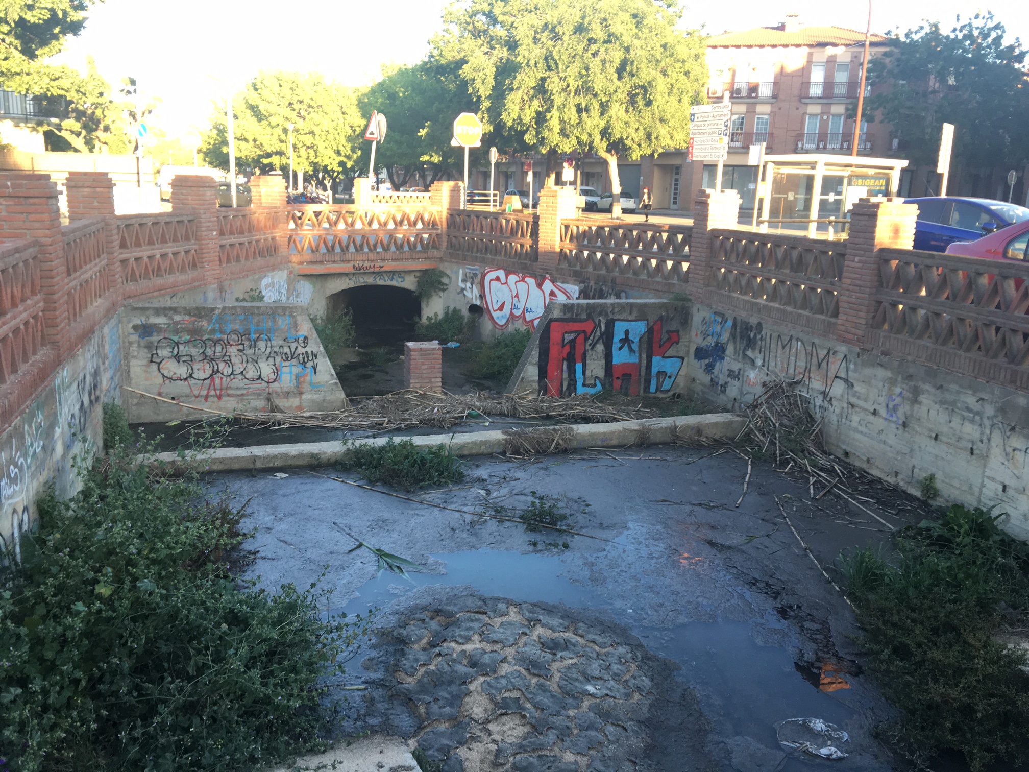 El tram del riu ubicat a l’entrada de l’aparcament de l’avinguda Pau Casals s’ha omplert d’aigües brutes. L’ olor es comença a percebre a pocs metres de distància i no deixa lloc a dubtes.