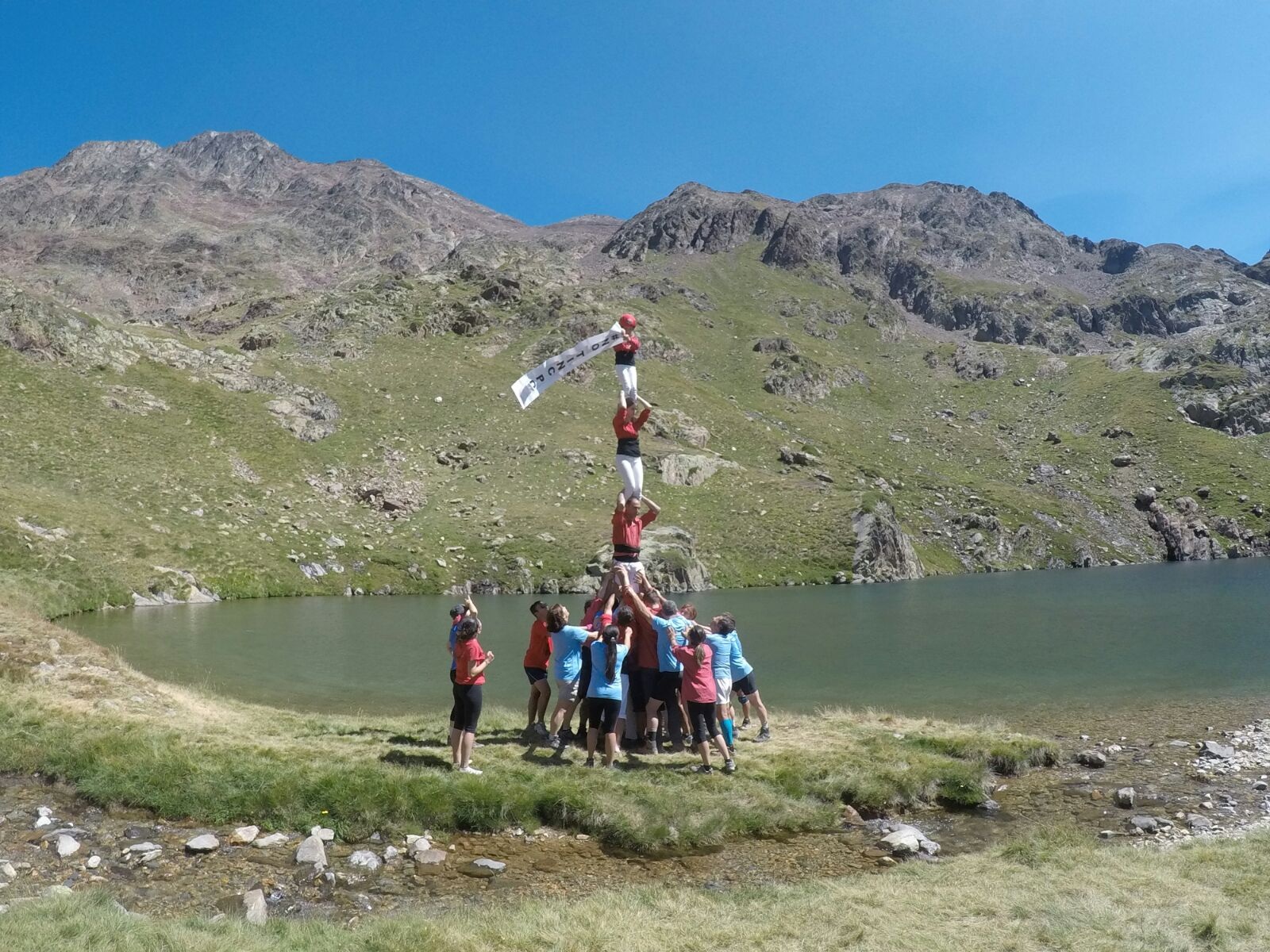 A més, els castellers de l’Alt Maresme van carregar un altre pilar a l’Estany d’Estats, aquest en record a les víctimes de l’atemptat de Barcelona i Cambrils, en què l’enxaneta va desplegar una pancarta amb el lema “No tinc por”. La intenció inicial era desplegar-la al cim de la Pica d’Estats, però la climatologia els va fer canviar d’opinió.