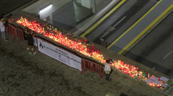 L’homenatge va començar amb la lectura del manifest elaborat per l’Ajuntament de Blanes, on es rebutjaven els atemptats i es feia arribar el suport a les víctimes, familiars i amics. El manifest es tancava afegint-se al sentiment unànime que s’ha estès aquests últims dies amb el lema “No tenim por!”. A la lectura, va seguir-la la música del Cant dels Ocells interpretada per violí i piano, que va donar peu a l’encesa d’espelmes i ofrenes florals.